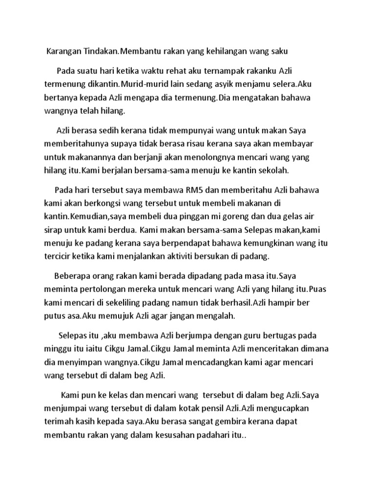 Karangan Tindakan Membantu Rakan Yang Kehilangan Wang Saku
