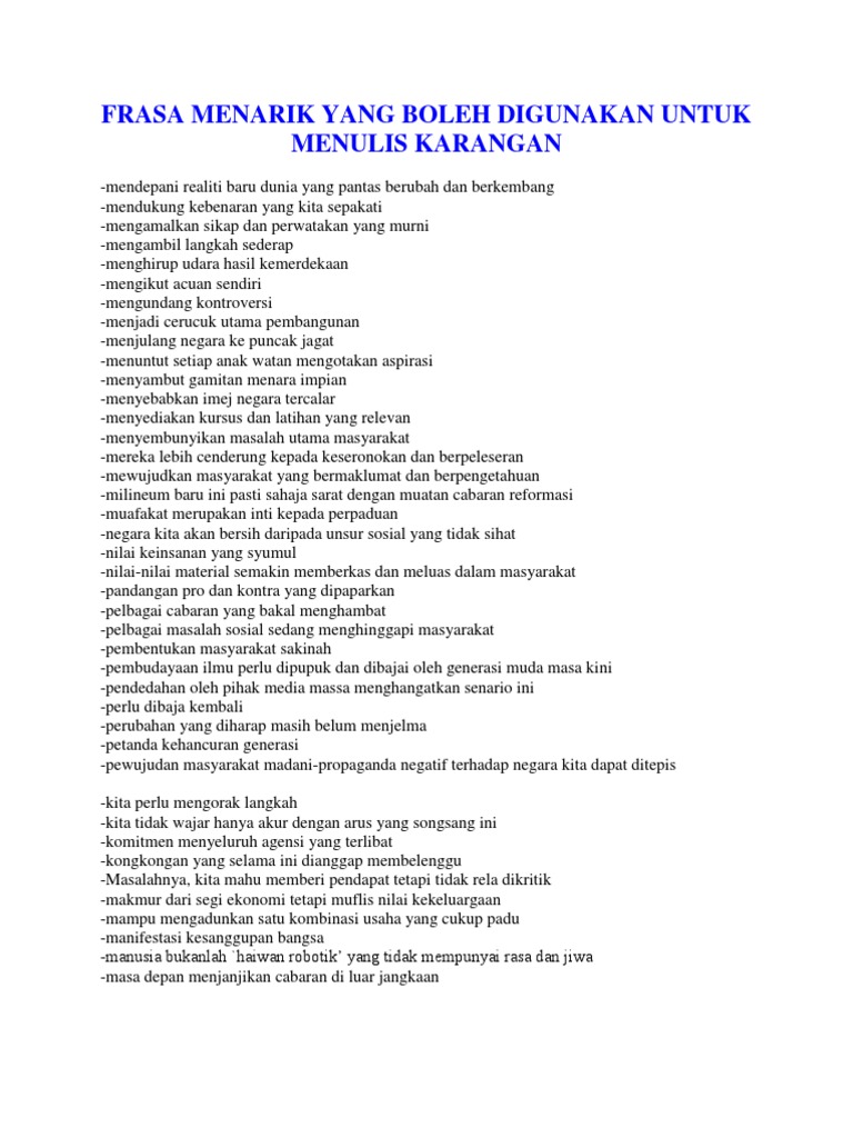 Frasa Menarik Yang Boleh Digunakan Untuk Menulis Karangan