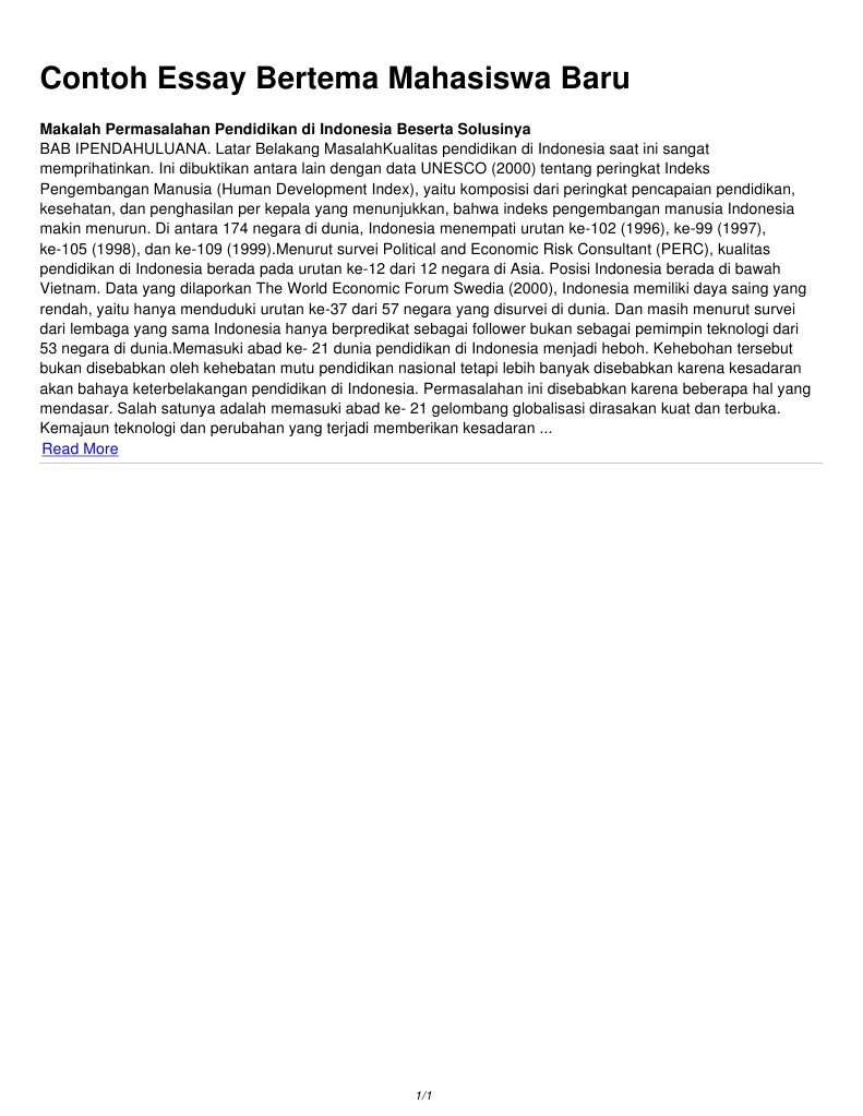 Contoh Essay Bertema Mahasiswa Baru