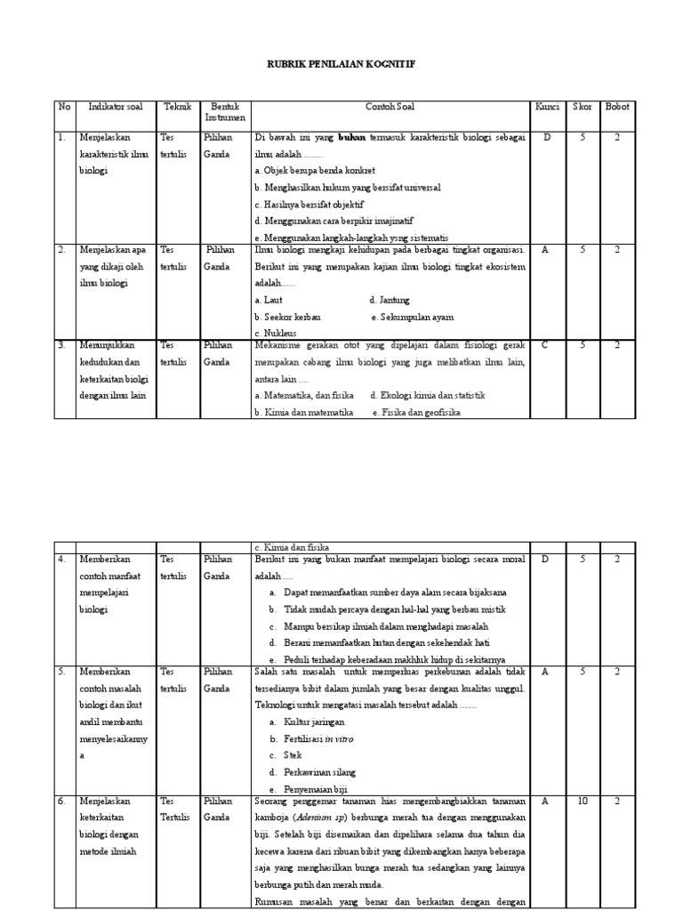 Contoh Instrumen Peserta Rubrik Penilaian Pdf Download Gratis