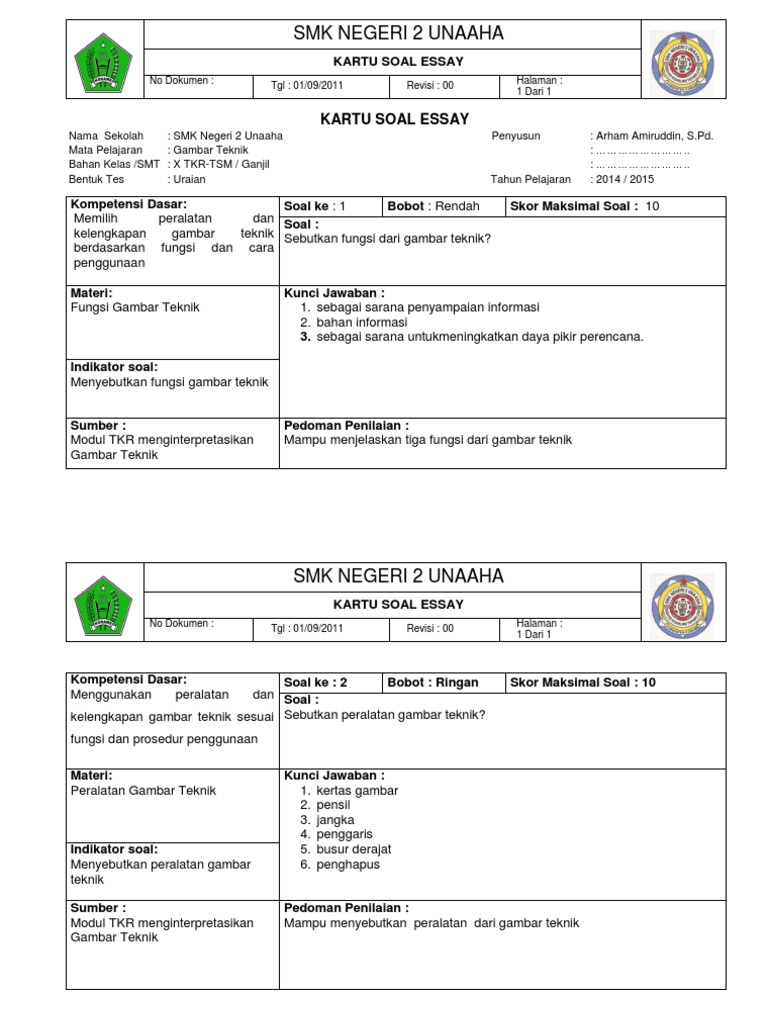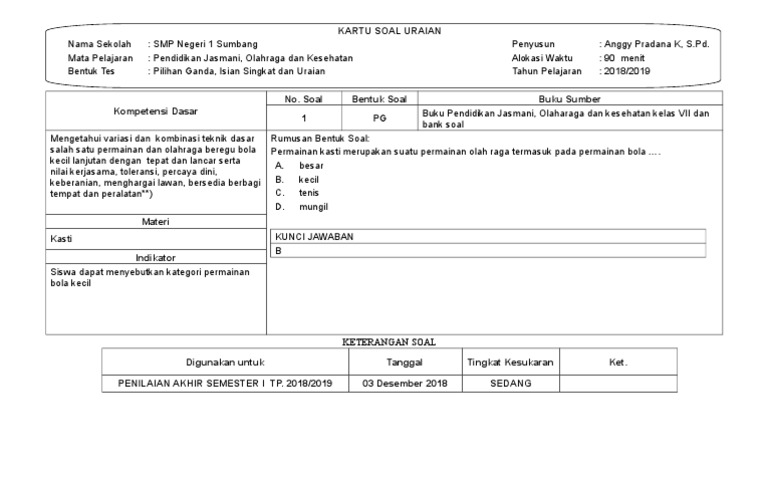 1 8 Format Kartu Soal Essay Doc