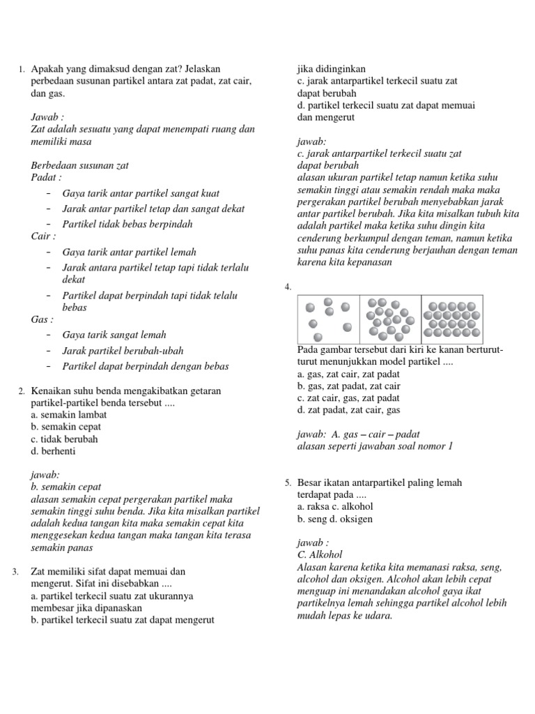Soal Ipa Kelas 7 Smp Bab Zat Dan Wujudnya Dilengkapi Kunci Jawaban
