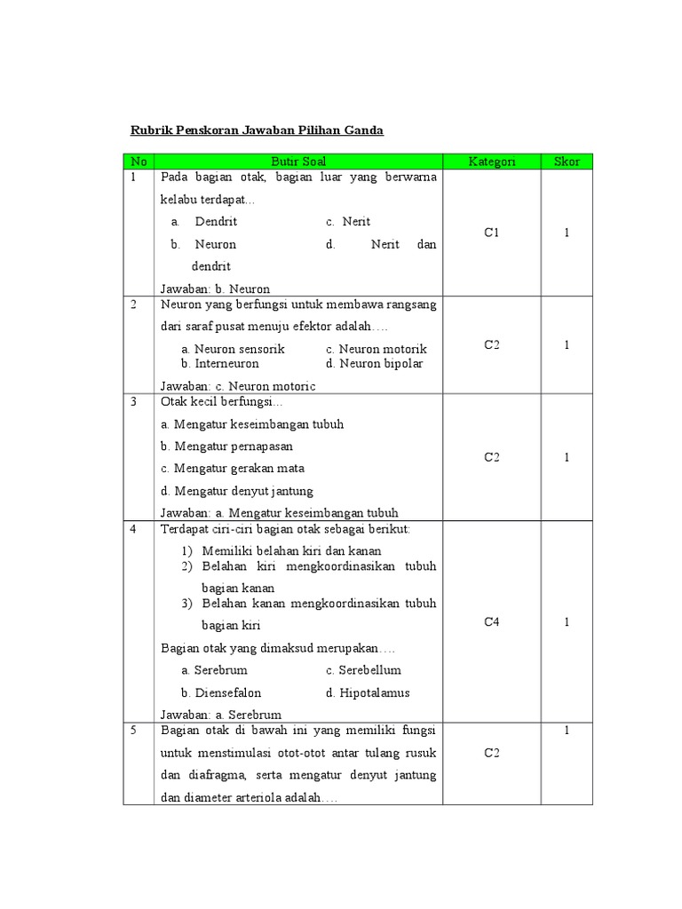 Rubrik Penskoran Jawaban Pilihan Ganda