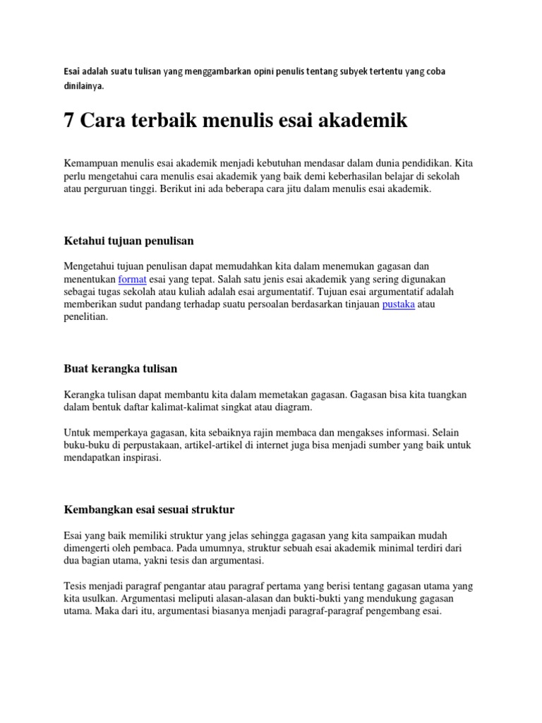 Tips Dan Contoh Menulis Esai Bagi Pemula Docx