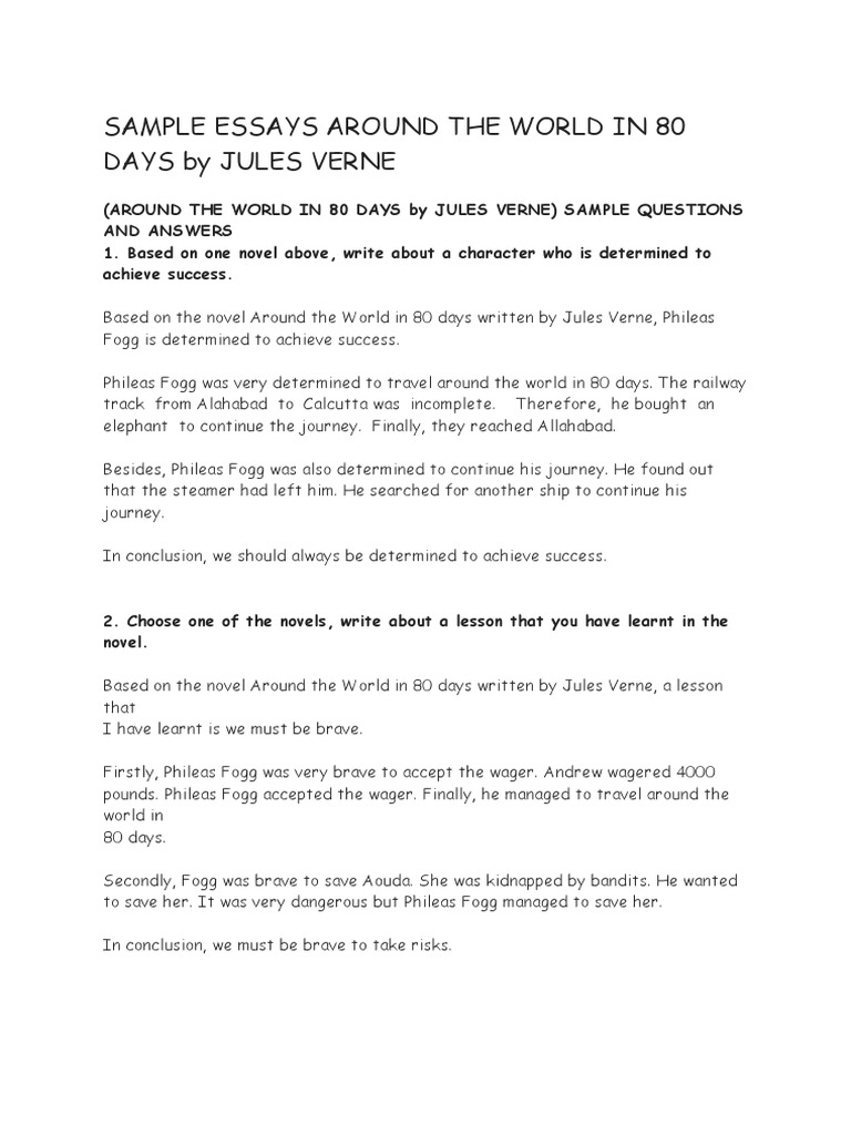 Sample Essays Around The World In 80 Days By Jules Verne Docx