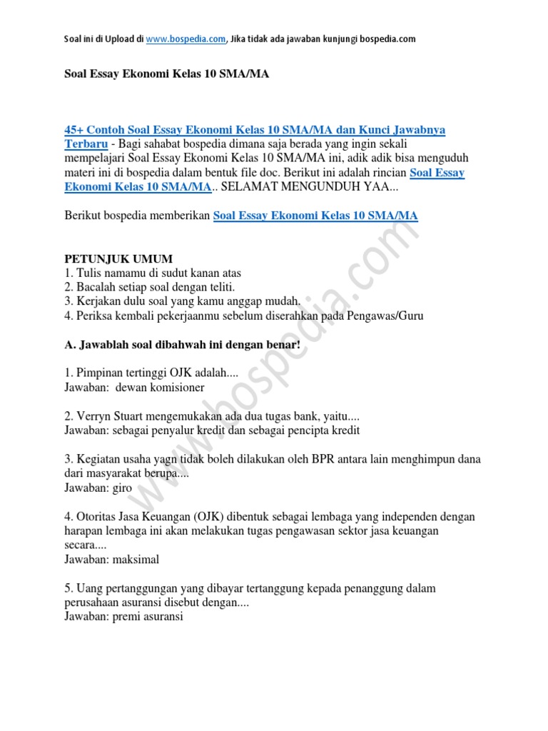 Soal Essay Ekonomi Kelas 10 Sma Ma